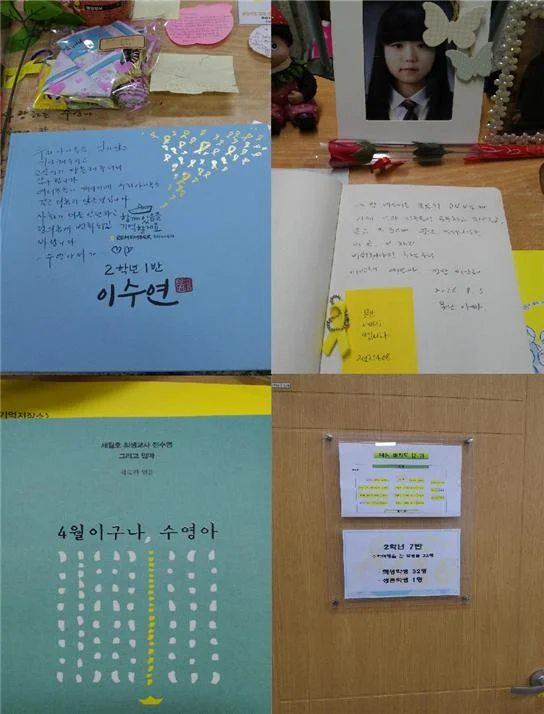 Leaving behind the Sewol in Mokpo, the bus headed to Ansan. After passing a road filled with cherry blossoms at full bloom, it arrived at Ansan Office of Education. An annex to the office displays the representation of the classrooms of Danwon High School’s second graders. These classrooms are named, the “Classrooms of Remembrance.” The first and second floors of the building feature Classes 1 to 10, which are filled with letters and memorial items of the deceased students and teachers. Before getting on the bus, I resolved to face the Sewol disaster head-on while maintaining my composure. That was easily broken, and I burst into tears the moment I stepped into Class 1. A message from Suyeon’s father thanking us for remembering the students and visiting the Classrooms of Remembrance, a memo written by Kyunggeun Yoo, Ye-eun’s father calling himself a “stupid father,” apologizing to his daughter, remarks from Sooyoung Jeon’s mother, a teacher, and only survivor of Class 7. I wondered what life for this classroom’s lone survivor was like. Individuals’ pain and grief endlessly continued in various forms.