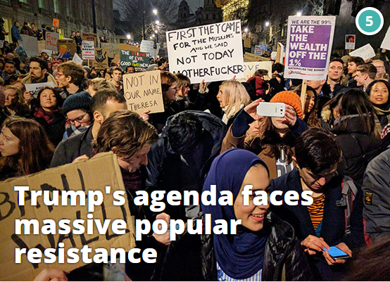 From the very first day of office, Trump's presidency has faced unprecedented popular resistance. In the first week, his blanket ban on Muslims from six nations was met with spontaneous protests at more than 20 major international airports across the USA - and has been blocked repeatedly by courts ever since and is now only temporarily enacted. Popular movements involved in fighting the white supremacy, corporate greed, and militarism that the Trump regime represents have reported a massive surge in engagement and support. (READ MORE)