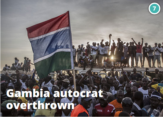 Military ruler, Yahya Jammeh, who ruled Gambia with an iron fist for 22 years was forced to step down after he lost the 2016 election. Jammeh predicted he would rule for a billion years, but young Gambians came out in large numbers and used social media to mobilise votes for his opponent, Adama Barrow. Jammeh tried to overrule the election results, but fierce opposition from trade unions, professional associations and pressure from outside states forced Jammeh to relinquish power. (READ MORE)