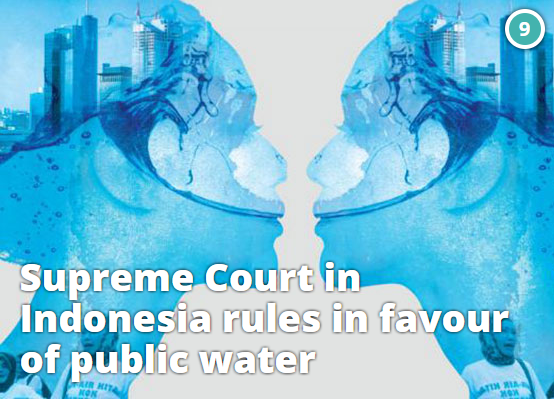Thanks to the tireless campaigning of citizen groups in Jakarta, Indonesia's Supreme Court ruled in October that privatisation of water is a violation of human rights and annulled an agreement between city-owned water operator PAM Jaya and two private companies. The court prohibited private partners from running tap water services and agreed that privatisation had deprived poorer citizens of access to water. Jakarta is one of more than 235 cases of communities worldwide that have brought water back under public control in recent years. (READ MORE)