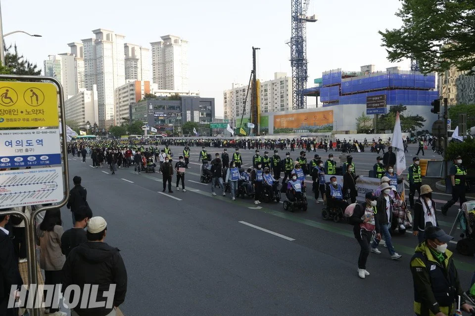 In this context, the Joint Struggle Committee for the April 20 Protest Against Discrimination on Disability (the Joint Committee) was created in 2002. The Joint Committee resolutely rejected the hypocrisy of people thinking and talking about disabilities only on April 20. It initiated struggles calling for a society in which the disabled can live without discrimination. The Joint Committee launched a month-long struggle (the April 20 struggle) starting from the March 26 commemoration of Okran Choi, a disability activist who died after exposing the National Basic Livelihood System. The struggle culminated on April 20 and completed its journey at the Mayday protest on May 1. However, the movement continued fighting for the demands of the Committee even after the April 20 struggle, amplifying the voices of disabled people.