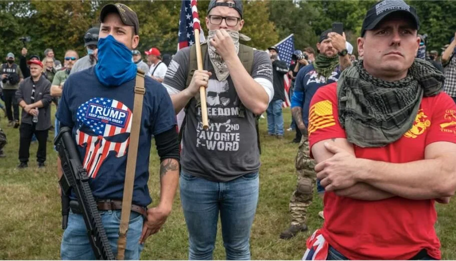 2020년 9월 26일 오레곤주 포틀랜드에서 프라우드 보이즈 집회에 참가한 사람들 출처: Axios