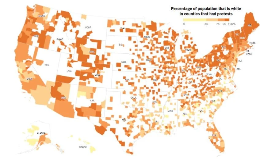흑인의 생명은 소중하다 집회가 열린 지역을 표시한 지도 출처: New York Times