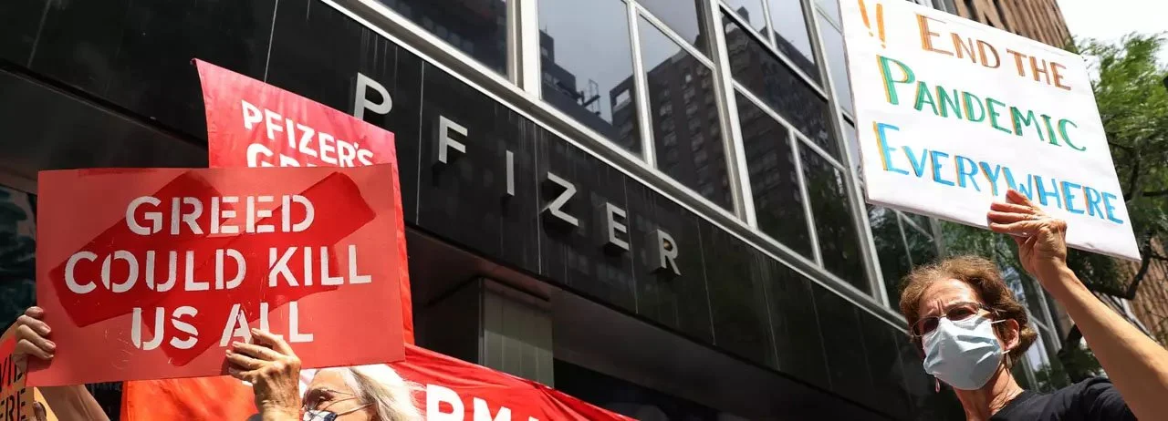 코로나 백신을 성공적으로 개발한 모더나, 화이자, 바이오앤테크는 아직 수 억 명의 사람들이 필요한 접종을 받지 못하고 있는 개발도상국에 백신 제조법 공유를 거부하면서 동시에 1분마다 총 6만 5천 달러의 이익을 쓸어 담고 있다.