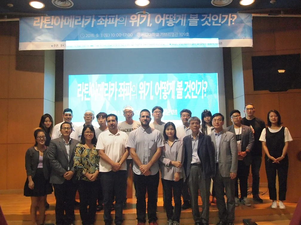 2016년 9얼 3일 토요일. 서강대 가브리엘 홀에서 “라틴아메리카 좌파의 위기,어떻게 볼 것인가?”라는 주제로 국제 토론회가 열렸습니다. 이번 토론회는 주류 언론을 통해서 왜곡되어 보도되는 라틴아메리카의 상황을 알아보고 향후 라틴아메리카의 연대활동을 함께 모색하고자 기획되었습니다. 토론회 개회가 선언되고 난 후 이번 토론회를 후원한 주한 베네수엘라 볼리바르 공화국의 후안 몬떼로사 살라스 참사관의 축사가 있었습니다. 참사관은 축사에서 “이번 토론회와 같은 자리가 라틴아메리카에서 실제로 일어나고 있는 정세를 이해하는데 도움이 되기 때문에 중요하다고 반겼습니다. 이어진 충북대 허석렬 사회학과 교수의 기조발제 “남미의 진보정치 주기는 끝났는가?”가 이어졌습니다. 현재 우익 세력이 정권을 잡거나 현 진보적인 정권을 불안정화시키는데 성공하긴 했지만 새로운 대안을 내지는 못하고 있기 때문에 지난 20년간 혁명적으로 조직된 민중이 이번 위기를 어떻게 이겨내는가가 중요합니다. 이는 라틴아메리카 국가들만의 문제가 아니기에 우리가 어떻게 연대할 수 있을지 모색하는 것도 중요합니다.