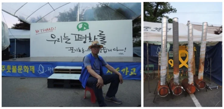 평화와 통일을 여는 사람들(평통사)의 김채영씨는 지난 3월에 롯데가 골프장을 사드 배치지로 넘기는 문서에 사인을 했다는 발표가 나자 이 곳으로 와 투쟁하기 시작했다. 6년 전, 미 해군 기지 설립을 반대하는 강정마을의 투쟁을 보고, 그는 하던 일을 그만두고, 평화 운동에 전적으로 참여하고 있다. 그는 촛불집회를 계기로 나타난 새로운 정치적 지형에 희망을 발견하고 있다고 한다. 문재인 대통령이 사드를 완전히 배제한 것은 아니지만, 전 정부의 사드 배치 시행 과정을 조사하고, 적절한 법적 절차를 거치겠다고 밝혔다. 최근 북한의 미사일 발사와 사드가 한국을 보호해 줄 것이라는 잘못된 믿음 사이에서 여론은 50 대 50으로 갈렸다. 김씨는 이 사안에 대한 철저한 조사가 이루어지고 사드의 근본적 한계와 진정한 목적이 드러나면 여론은 사드배치 반대로 돌아설 것이고, 사드를 완전히 막을 수 있게 되리라 기대하고 있다.